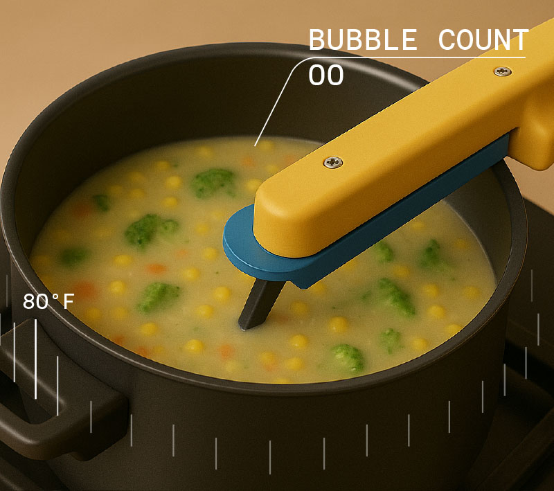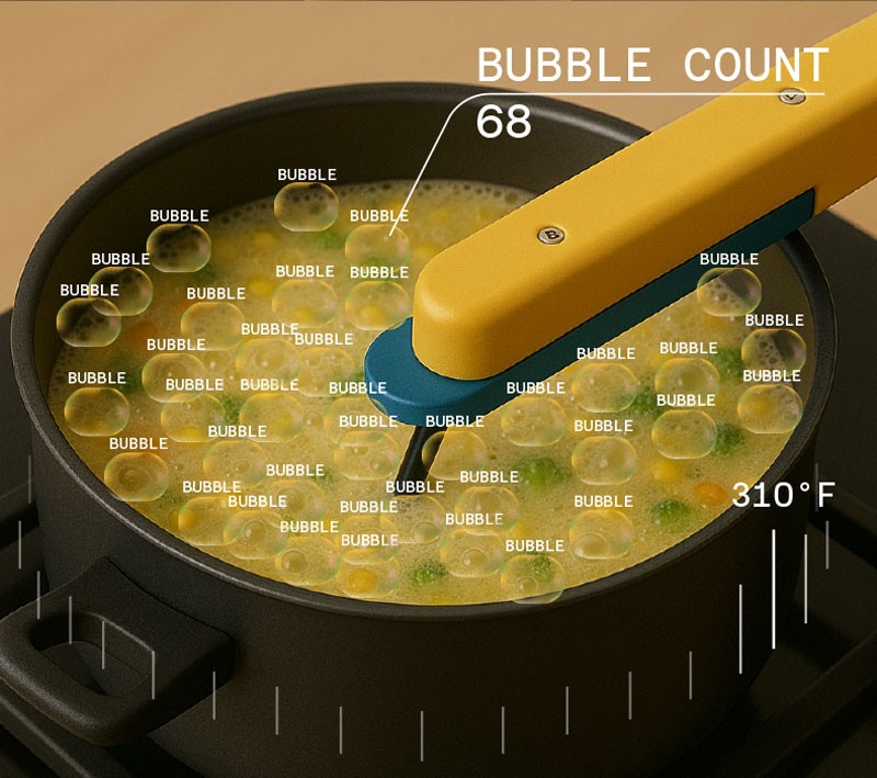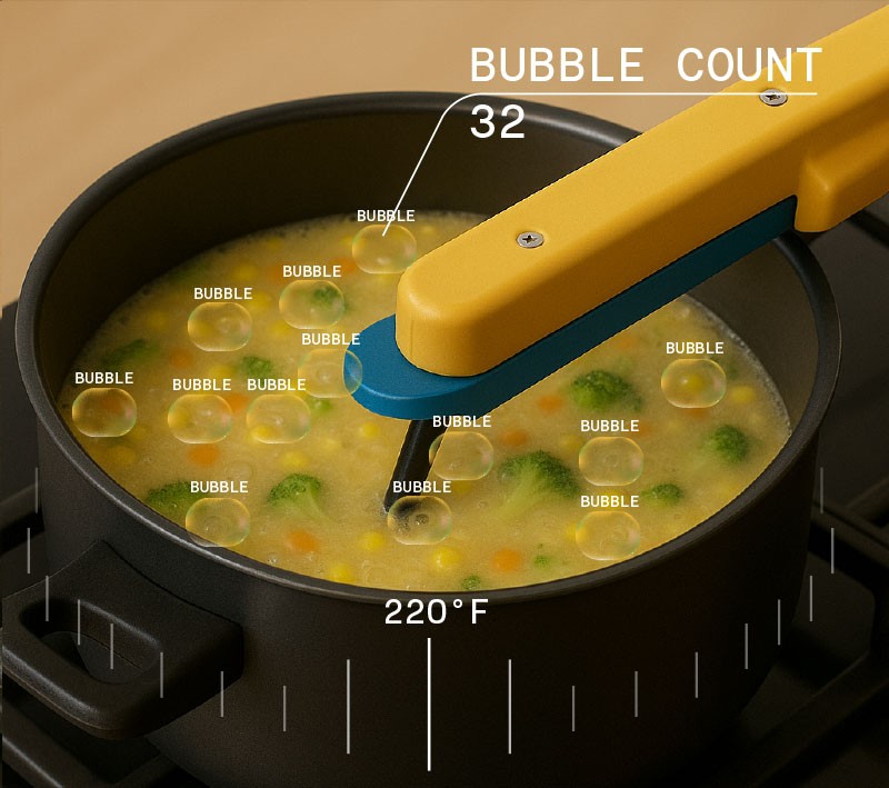 Analyzes bubble patterns to identify boiling and set the ideal simmer.
